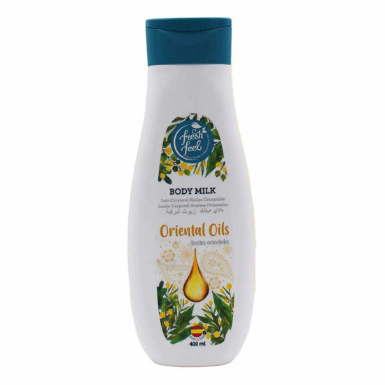 شیر بدن فرش فیل Fresh Feel مدل Oriental مناسب پوست های خشک حجم 400 میل ساخت کشور اسپانیا میباشد.