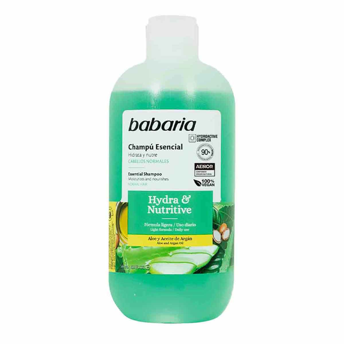 شامپو مغذی و آبرسان باباریا babaria مدل Nutritive مناسب استفاده روزانه حاوی آلوورا و روغن آرگان حجم 500 میل وگن و ساخت کشور اسپانیا میباشد.